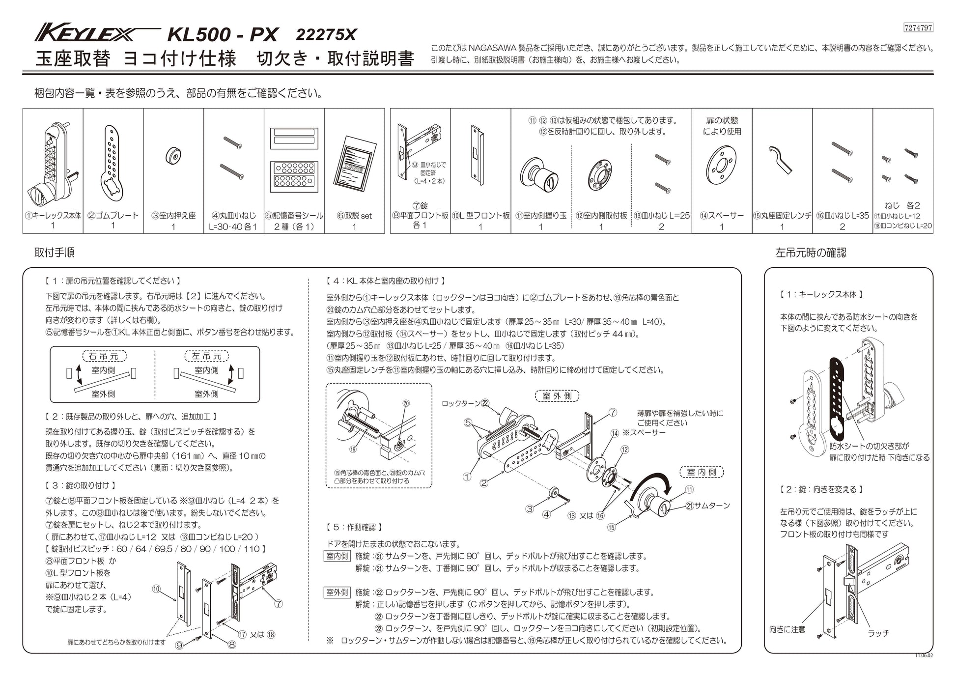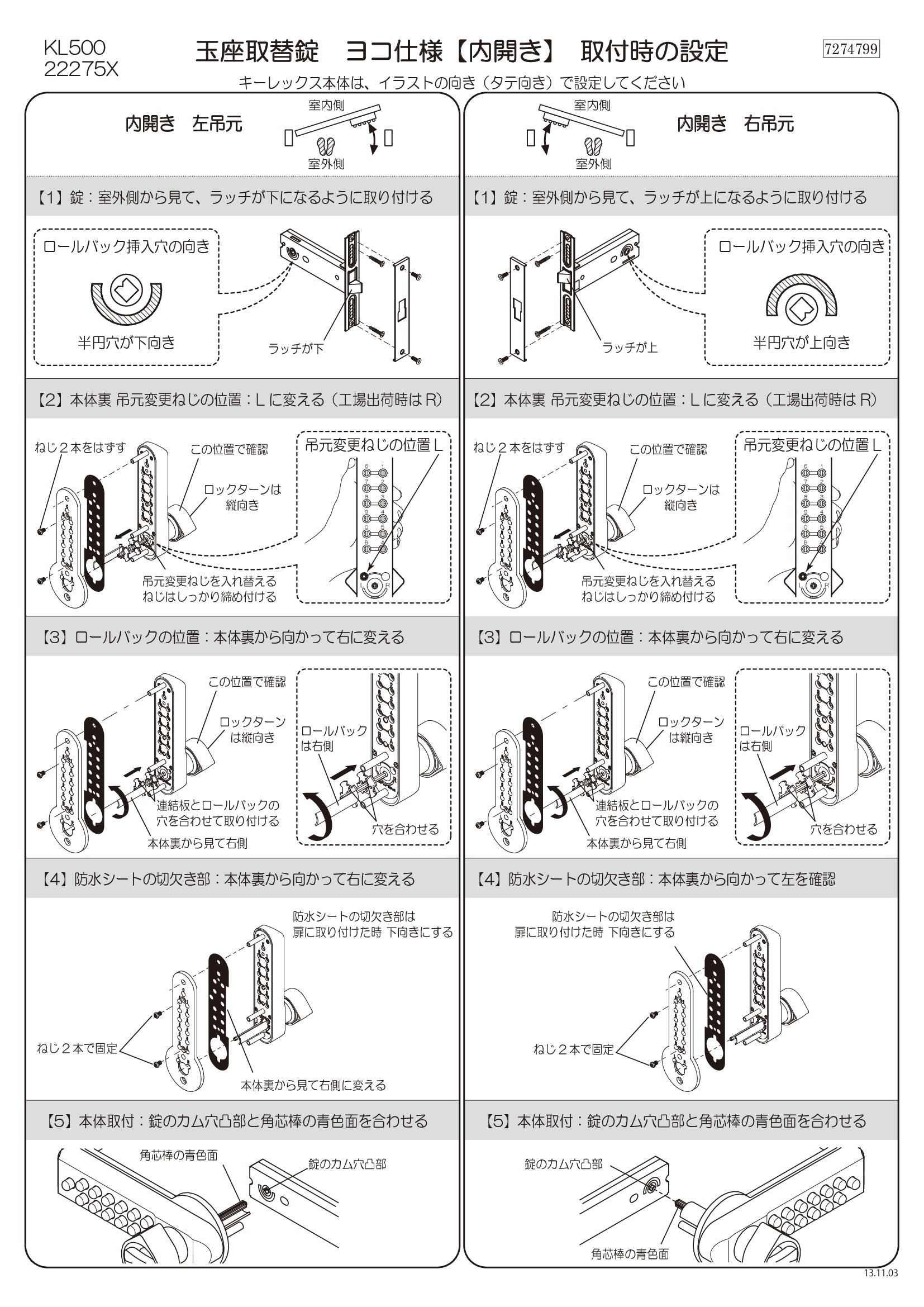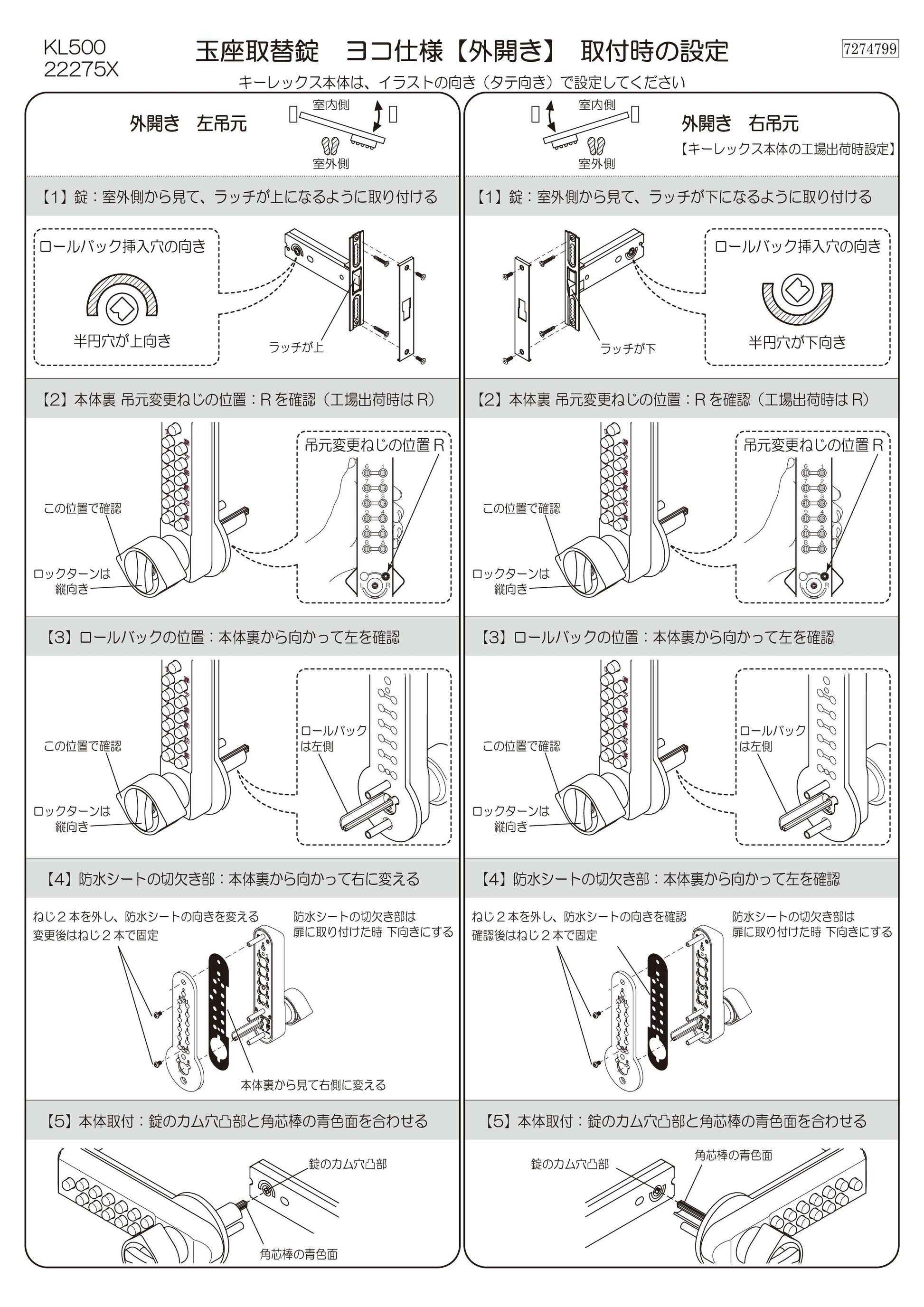 お取り付けできる錠前が限られる横框の扉でも、横向きに使用できるキーレックス「22275X」であればお取り付けが可能です。
