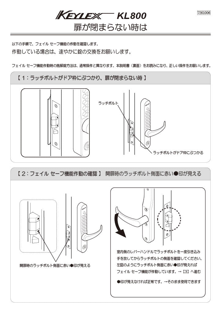 さらに、使用している錠前「AXD錠」は万が一、錠のラッチボルトが破損した場合でも扉を開閉できる安全設計です。錠の破損状態をラッチボルトの赤い●印で確認することができます。